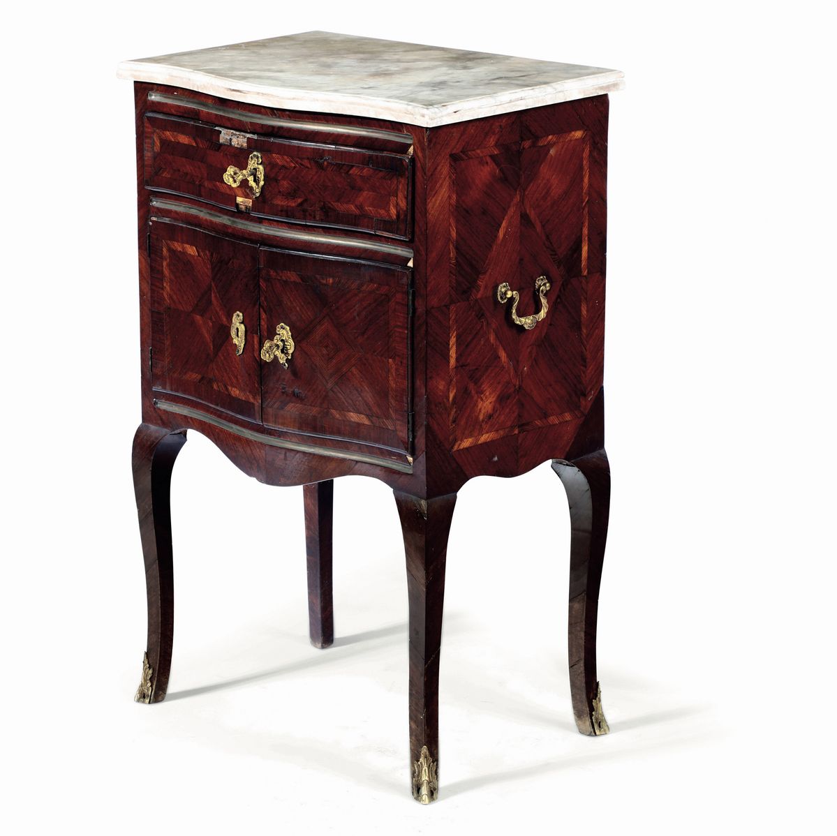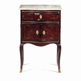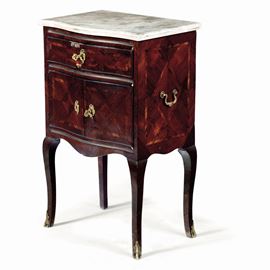 Comodino lastronato in bois de rose. Genova, XVIII secolo