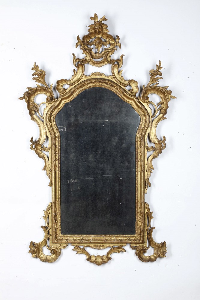Coppia di specchiere in legno intagliato e dorato. XIX secolo