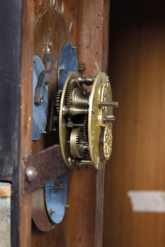 Nella parte superiore un'apertura rivela le ore scandendole per quarti d'ora.