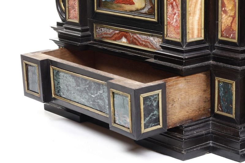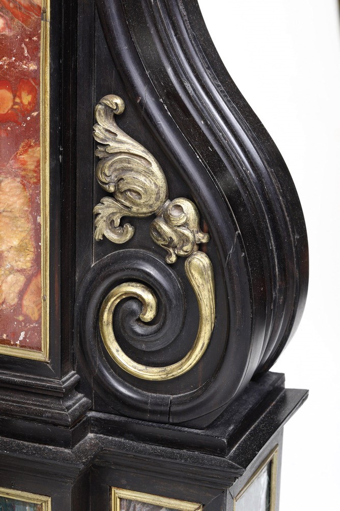 L'armonioso disegno della cassa e quello delle girali in bronzo trovano confronto con una serie di disegni autografi di Giovan Battista Foggini (Firenze 1652 -1725)