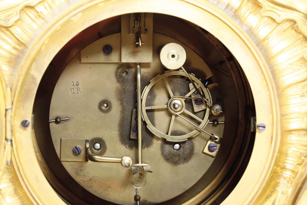 Pendola da tavolo in bronzo dorato. XIX secolo