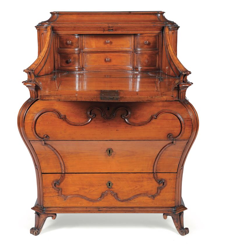 Fronte e fianchi mossi, tre cassetti sotto la calatoia