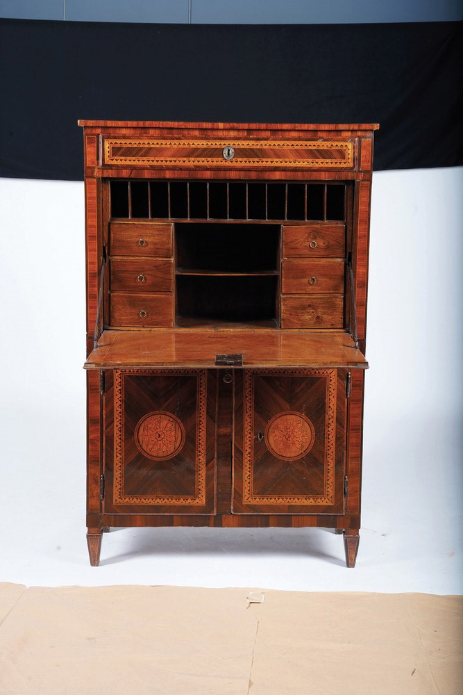 Secretaire interamente lastronato ed intarsiato. Fine XVIII secolo