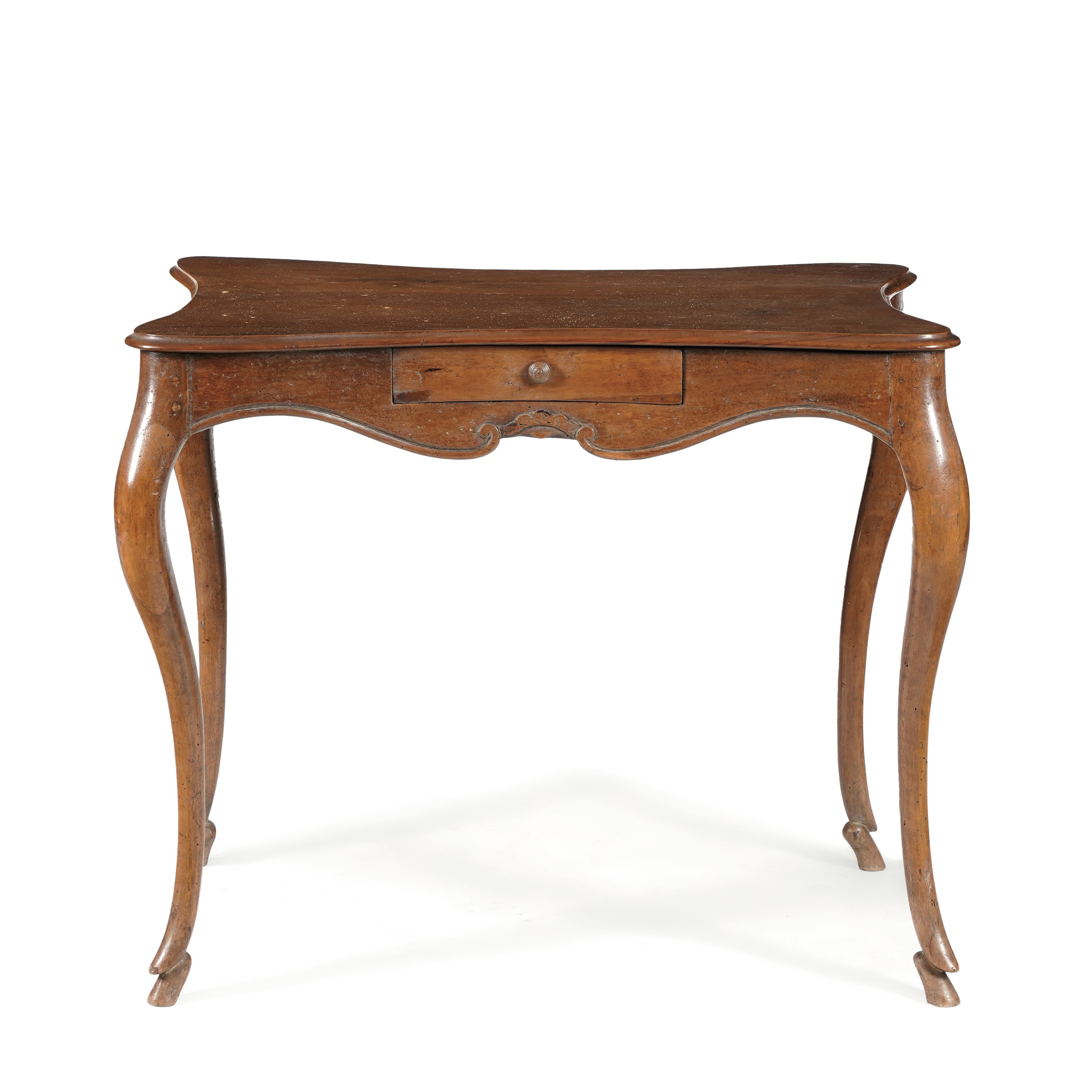 piano sagomato, un cassetto sulla fascia, gambe arcuate