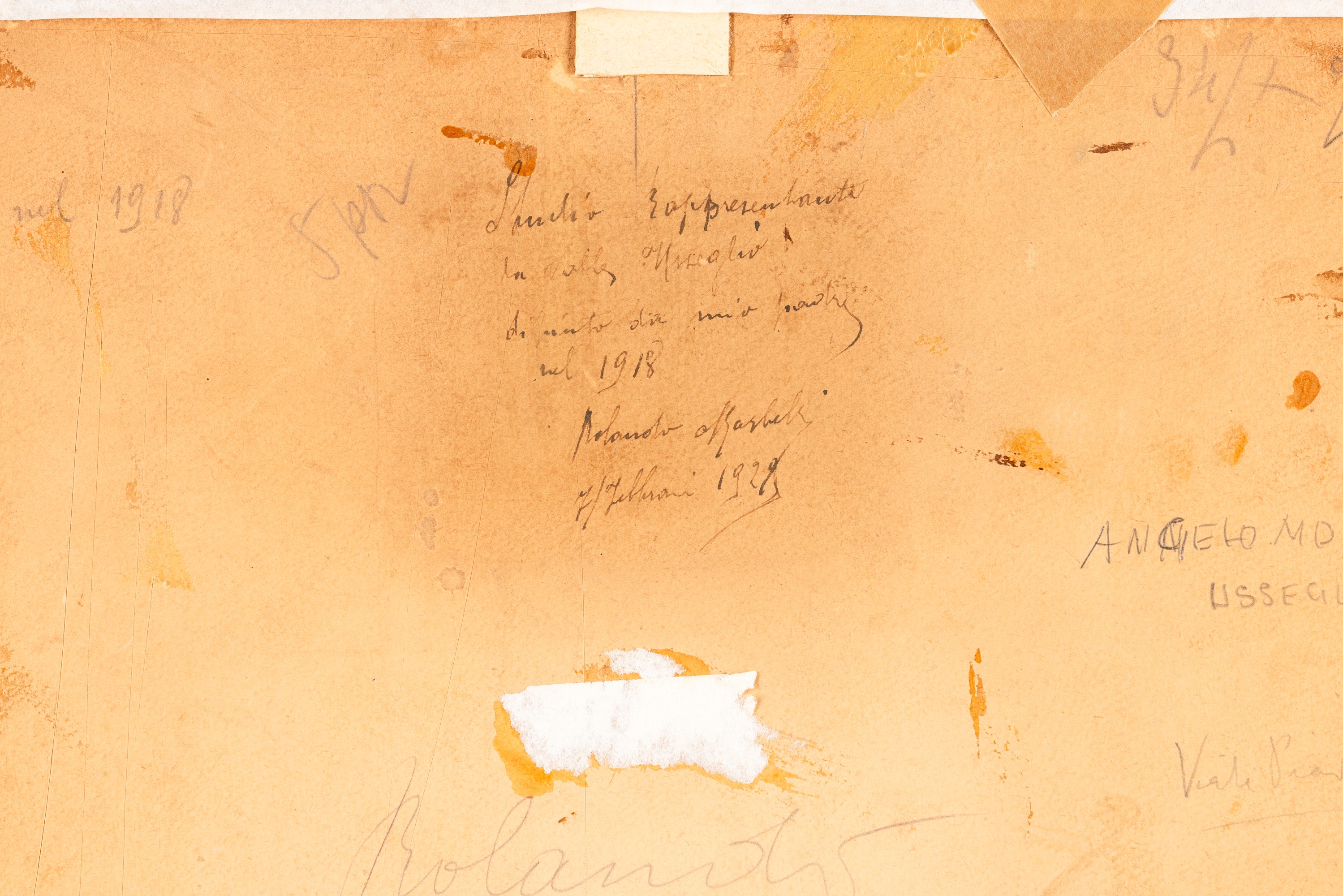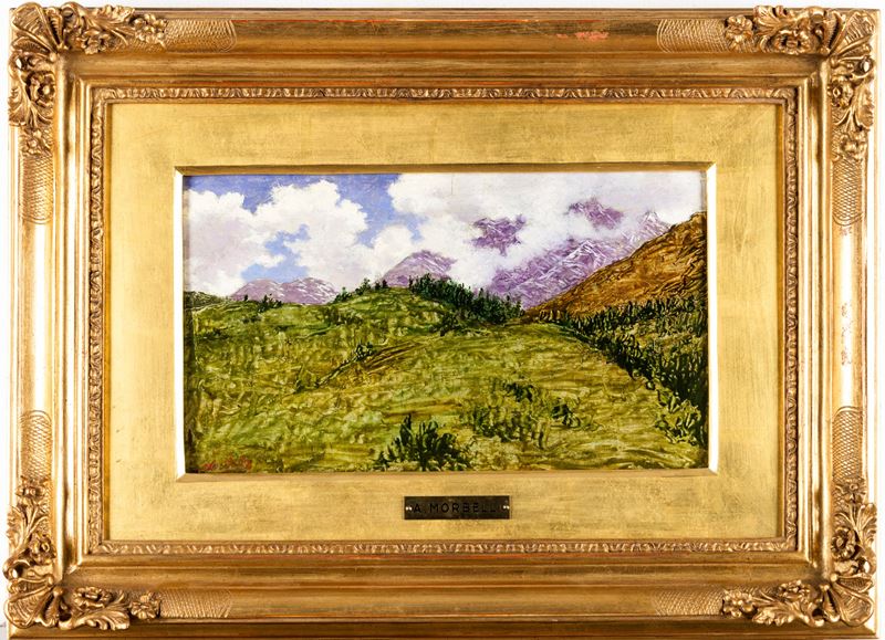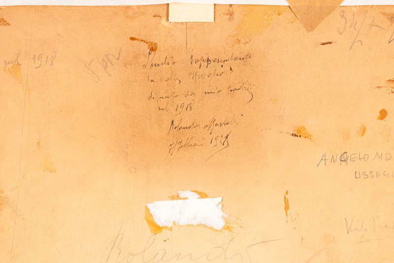reca al retro autentica del figlio dell'artista: "Studio rappresentante la valle Usseglio dipinto da mio padre nel 1918 / Rolando Morbelli / 7 Febbraio 1922 (o 1929)"