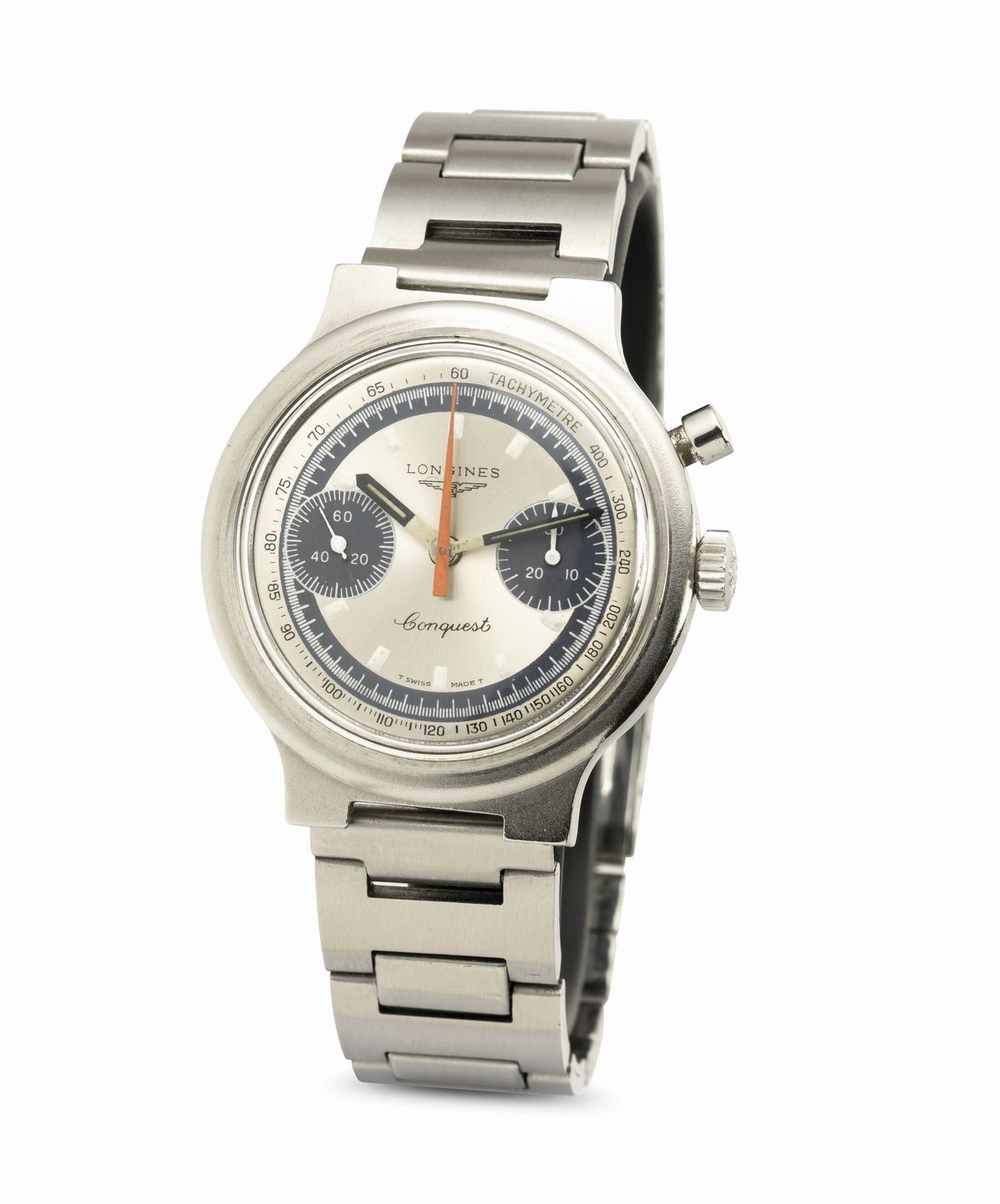 1972, Monaco di Baviera ospita i giochi Olimpici, Longines sponsor del tempo della gara lancia sul mercato un Conquest dedicato all'evento, con incisione al retro dedicata. Il nostro segnatempo al meglio delle nostre conoscenze è l'unico mai apparso sul mercato nella configurazione con due contatori.