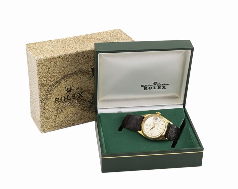 Classico Datejust 1601 in oro giallo 18k, quadrante Argentè, lancette ed indici a foglia con scatola, garanzia e certificato [..]