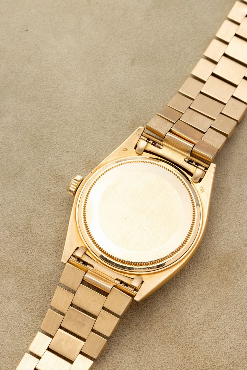 Classico ed elegante Daydate 1803, in oro giallo 18k con particolare quadrante color visone ed indici "Wide Boy", bracciale [..]