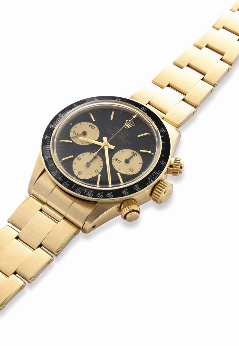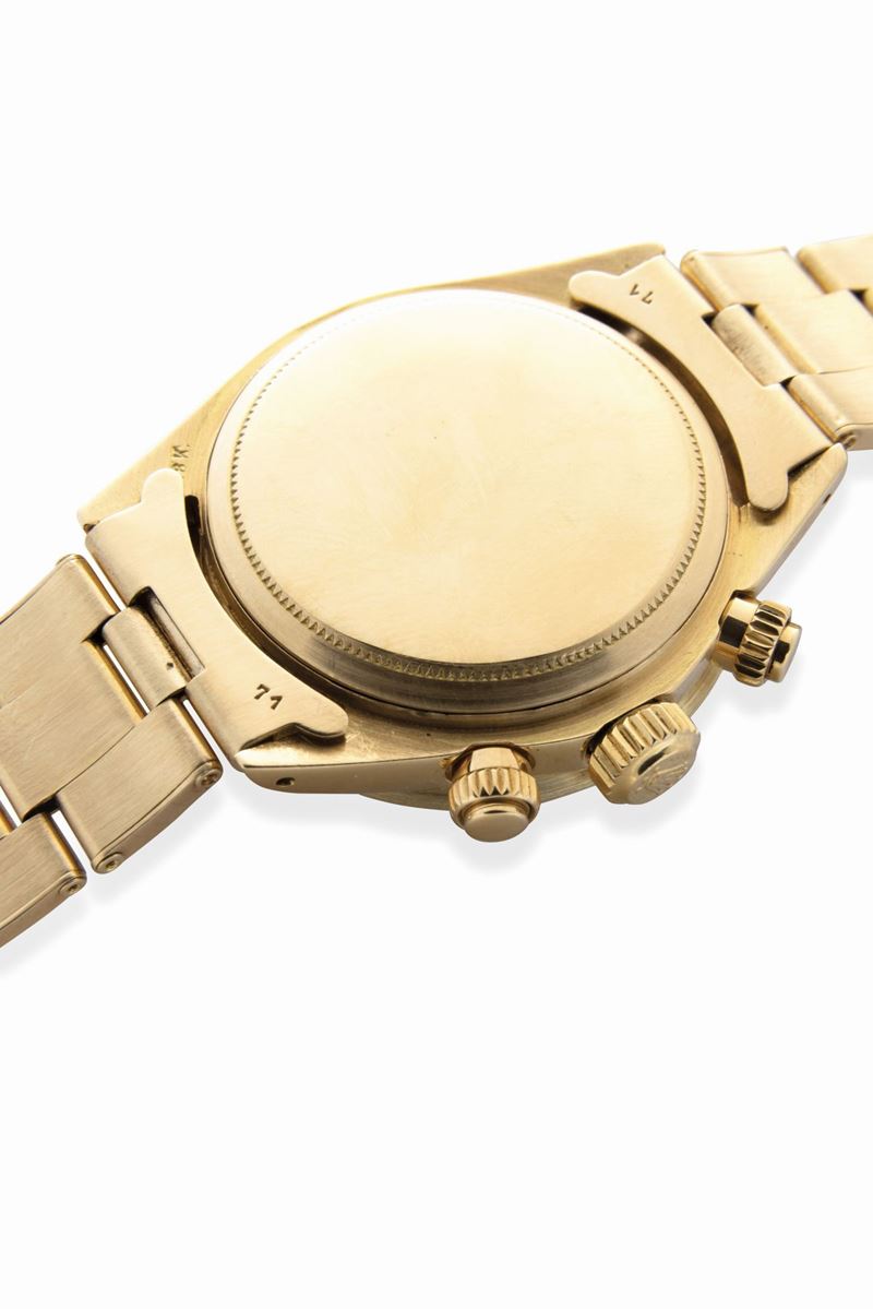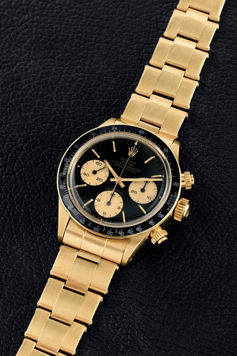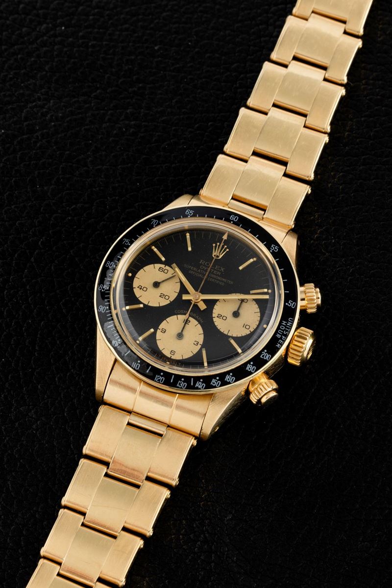 Introdotta alla fine degli anni ’70 e rimasta in produzione fino al 1987, la referenza 6263 (insieme alla referenza 6265), è stata prevalentemente realizzata in acciaio. Il presente orologio fa parte invece della più limitata produzione di casse in oro 18k, in questo caso si stima essere inferiore ai 2000 esemplari. La caratteristica fondamentale di questi orologi, oltre all’utilizzo del metallo più pregiato, è la presenza della scritta: “Superlative Chronometer Officially Certified” sul quadrante, che specifica appunto la certificazione cronometrica. La configurazione di questo quadrante nero con registri champagne a contrasto insieme alla lunetta nera acrilica è un connubio di eleganza e sportività. L’orologio è complessivamente in ottimo stato conservativo ed è accompagnato da garanzia originale, la quale ci conferma che è stato venduto in Italia nel 1979.