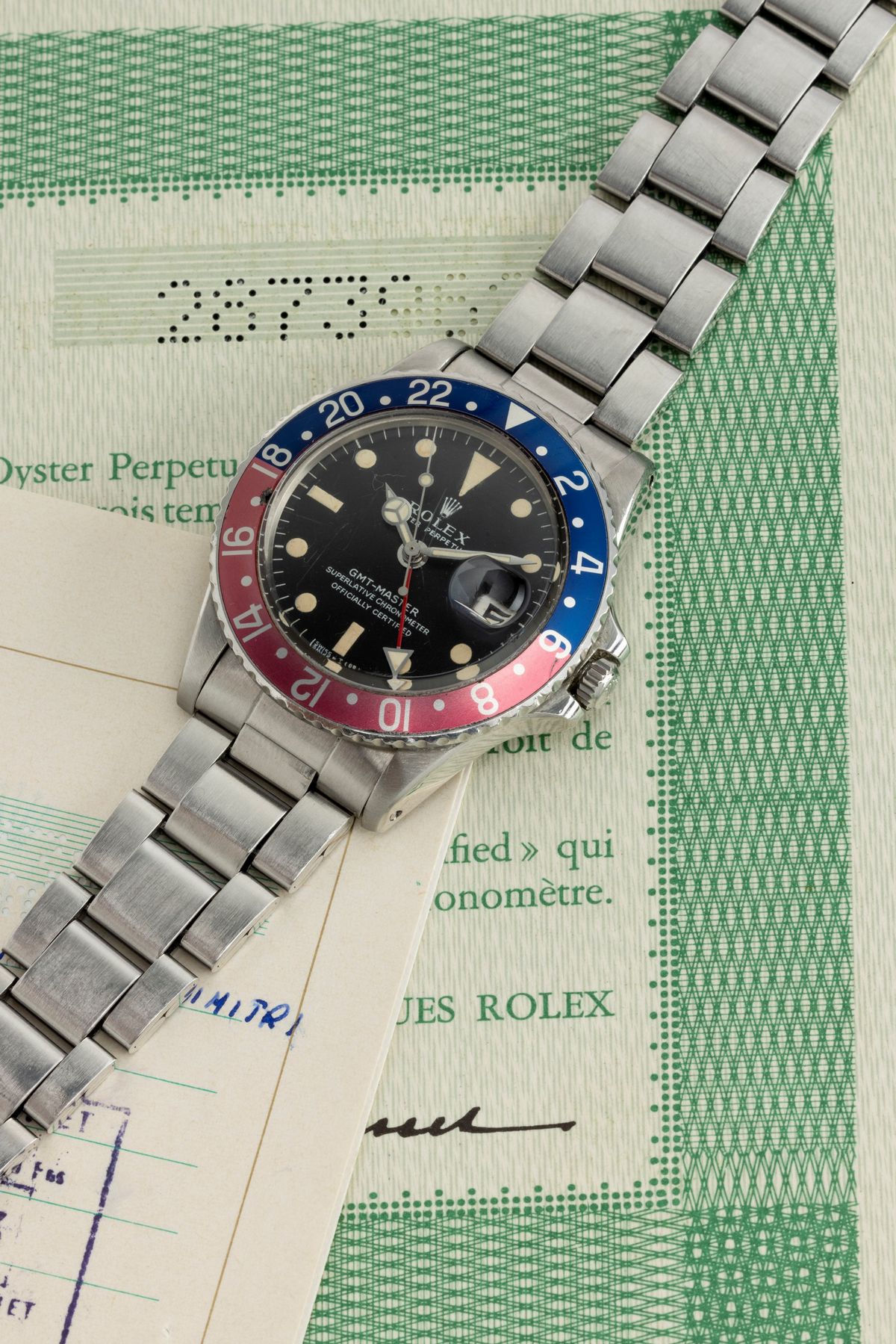 GMT Master Pepsi ref 1675 "Long E" in acciaio con ghiera girevole bicolore, quadrante nero opaco pallettoni, bracciale Oyster [..]