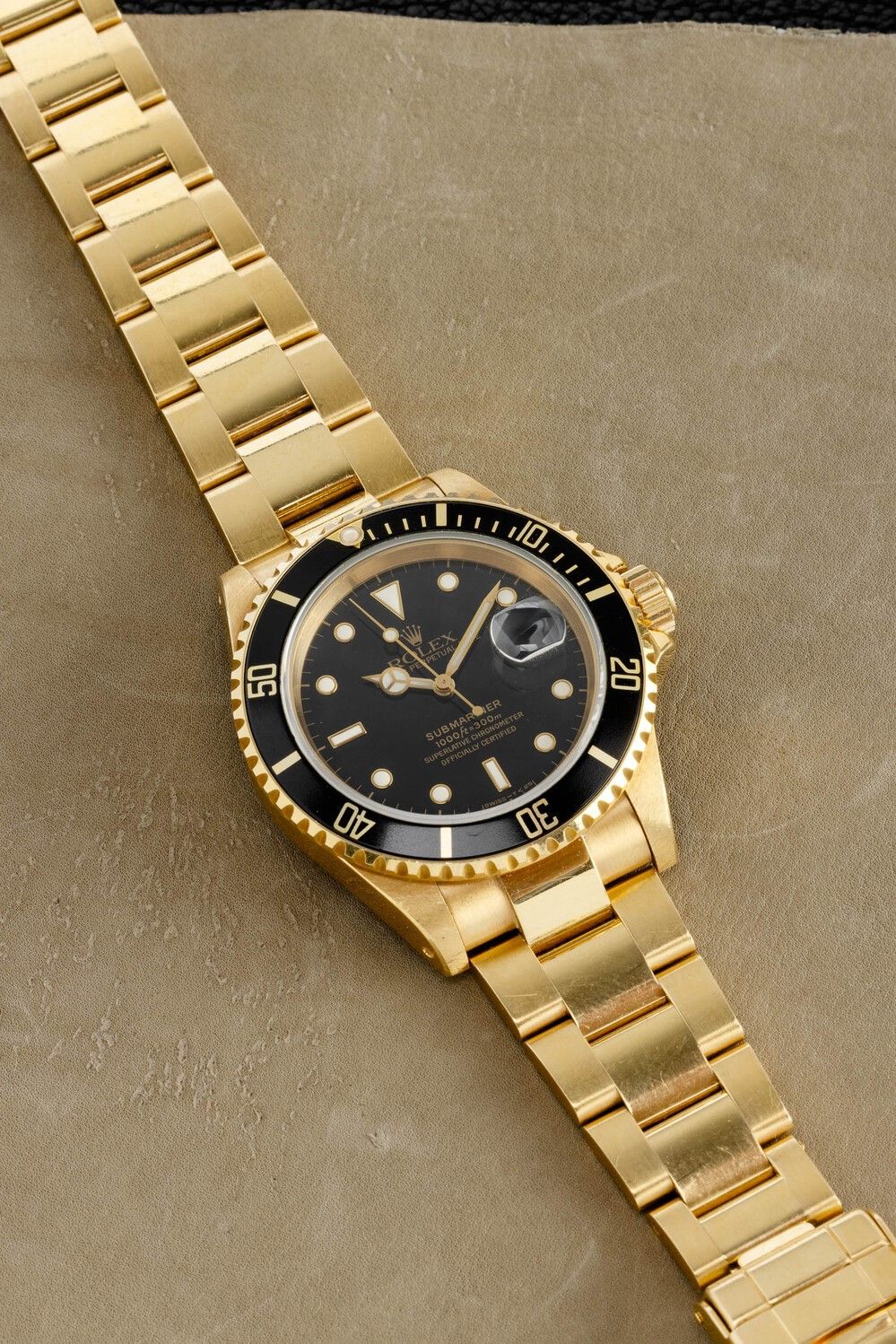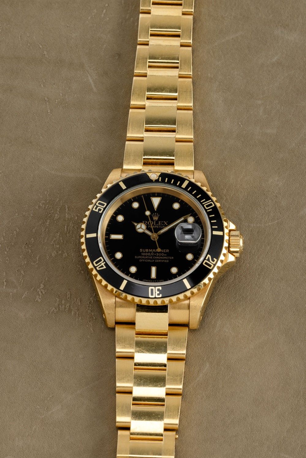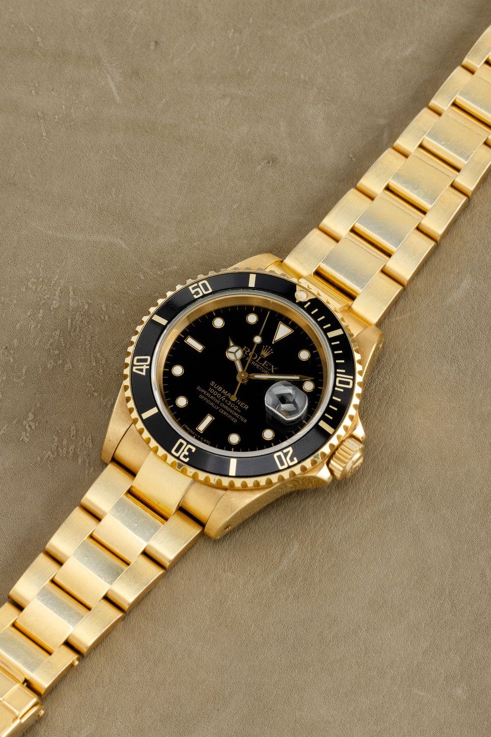Prezioso Submariner 16618 in oro giallo 18k automatico, bracciale Oyster con chiusura Fliplock, quadrante nero bicchierin [..]