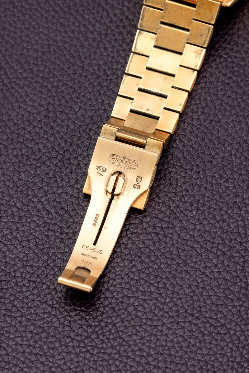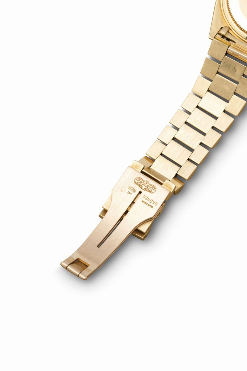 Raro e prezioso Daydate ref 18338 in oro giallo 18k con diamanti incastonati sulle anse, quadrante champagne opaco con numeri [..]