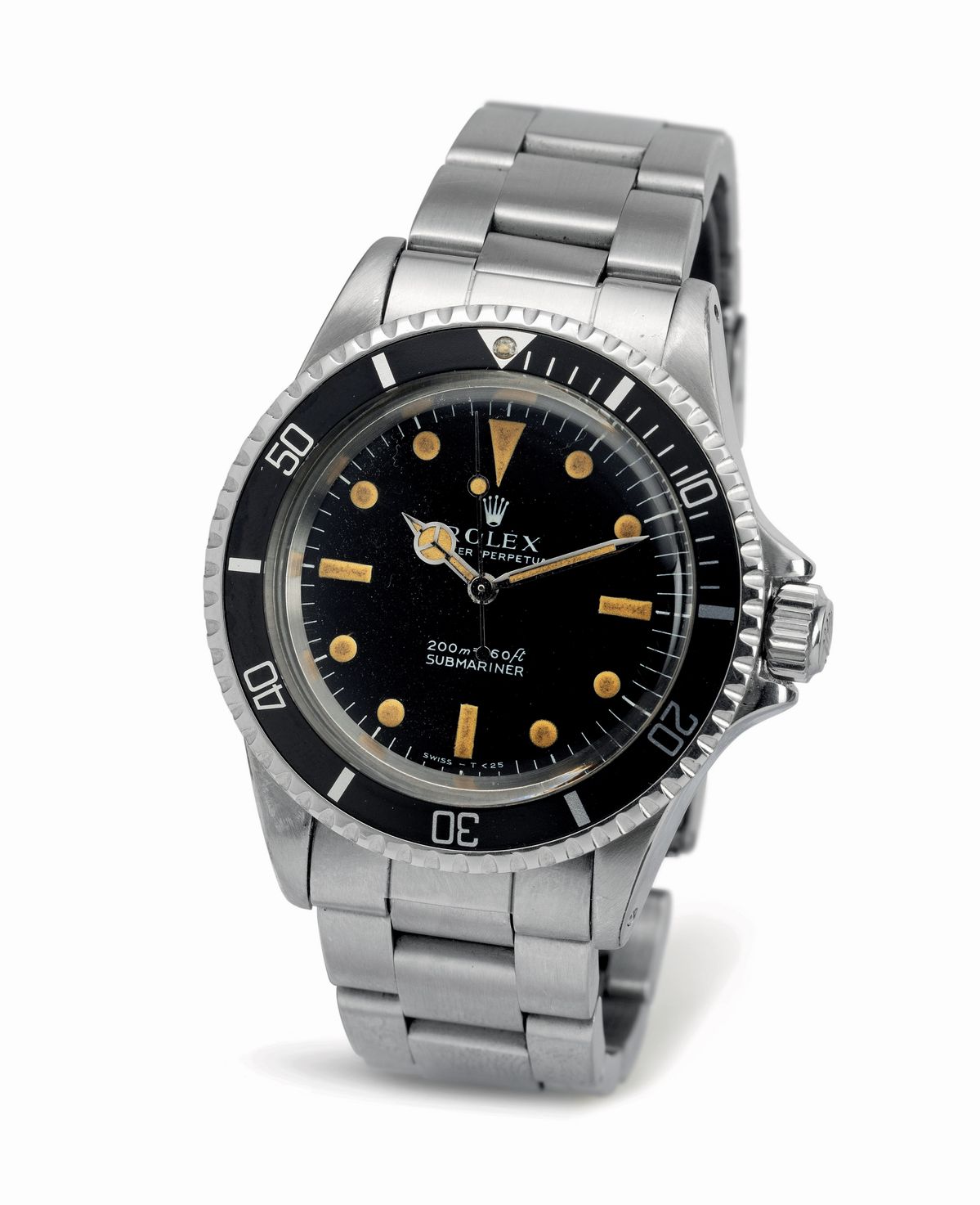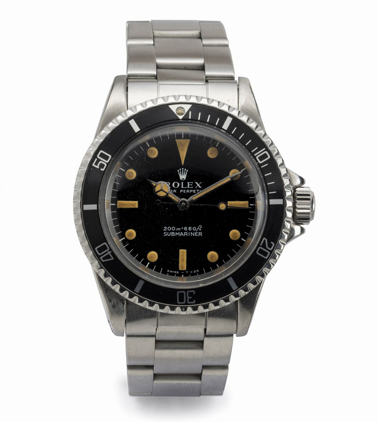 Submariner 5513 in acciaio con quadrante nero pallettoni "Meter First", movimento automatico, ghiera girevole e bracciale Oyster