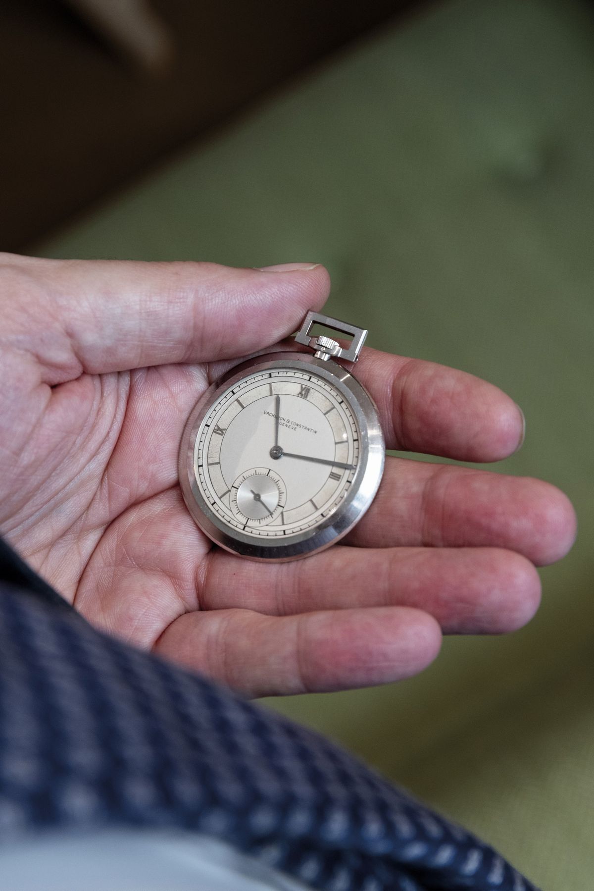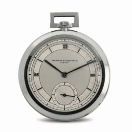 Elegante orologio da panciotto Art Decò anni ‘30 in platino, carica manuale con scappamento ad ancora, piccoli secondi al sei, quadrante bitonale con indici applicati