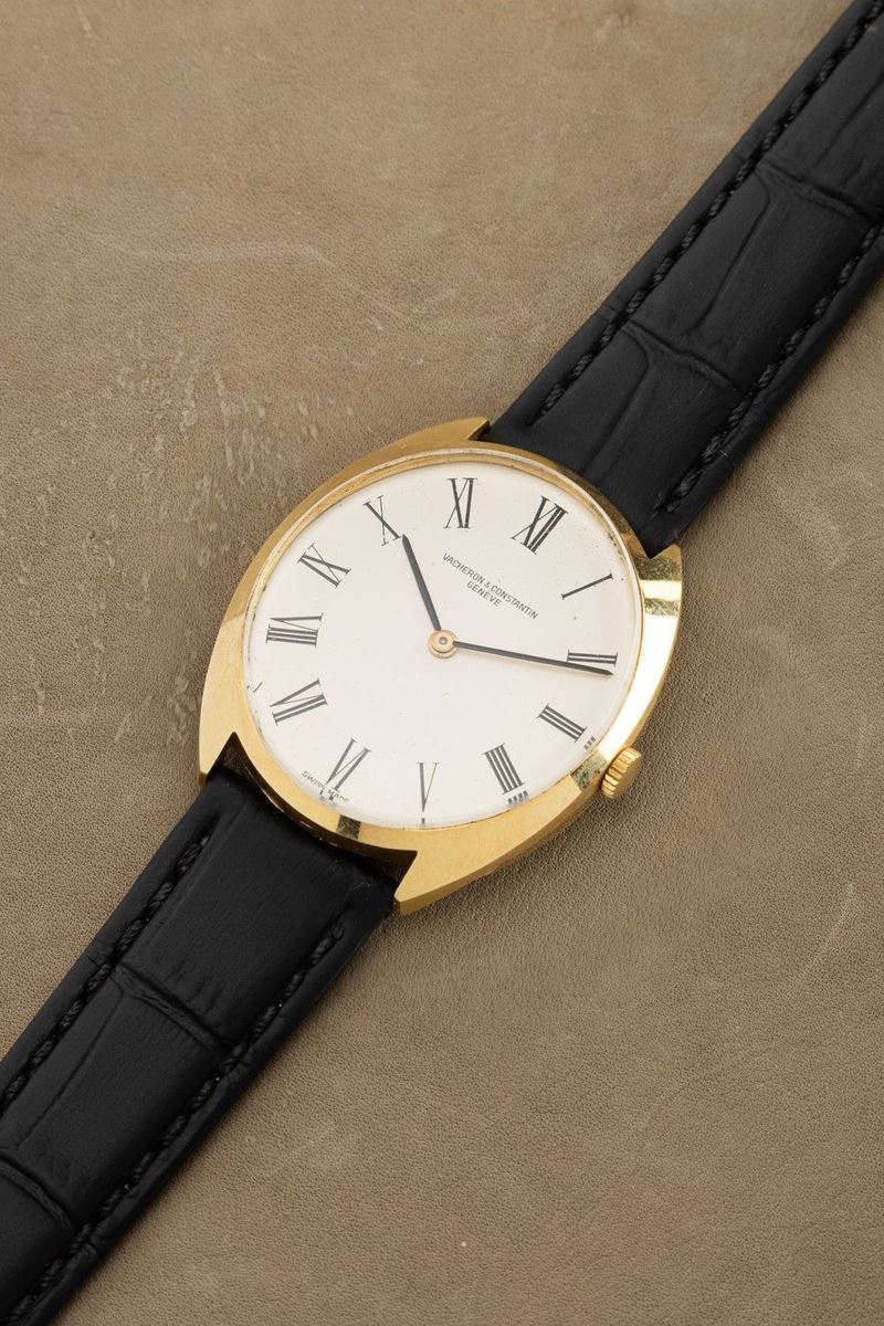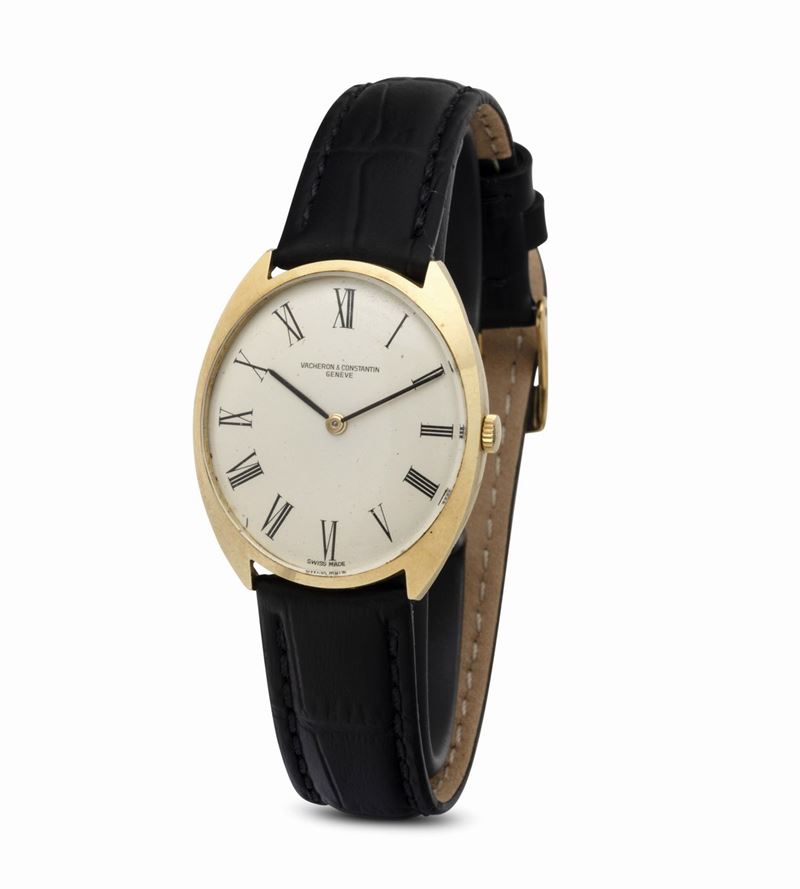 Elegante orologio di forma tonneau in oro giallo 18k solo tempo carica manuale, quadrante Argentè con numeri Romani