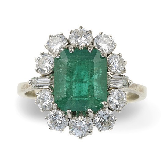 Anello con smeraldo e diamanti a contorno