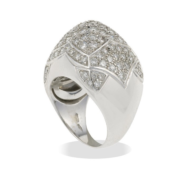 Bulgari. Anello "Piramide" in oro bianco e pavé di diamanti