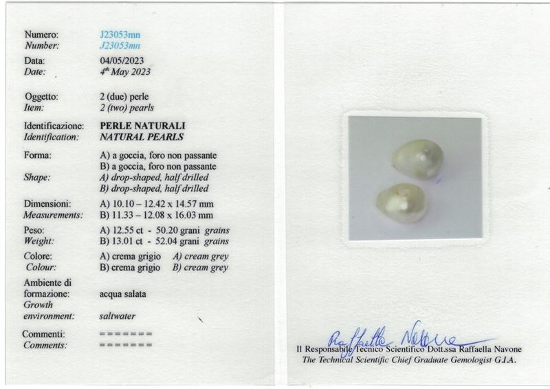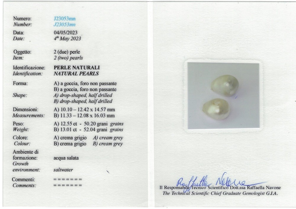 Orecchini con perle naturali, acqua salata, di ct 12.55 e 13.01