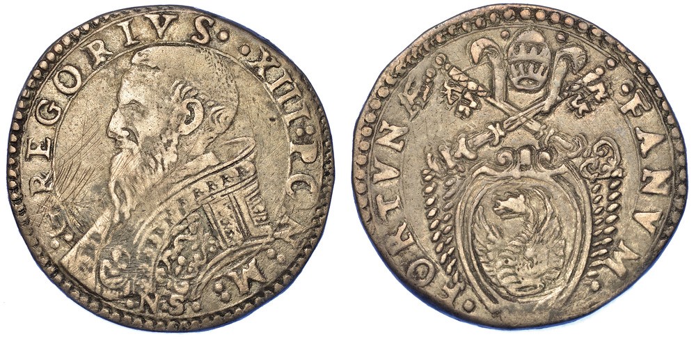 FANO. GREGORIO XIII, 1572-1585. Testone.