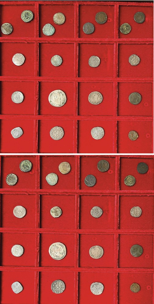 Monetazione mista dal XIV al XVI secolo, fra cui si segnalano: NICOLÒ II D'ESTE, 1361-1388. Marchesino (raro) - ERCOLE II D'ESTE, 1534-1559. Grossetto - ALFONSO II D'ESTE, 1559-1597. Giorgino 1596. Argento e rame. Conservazioni da B/MB a BB.