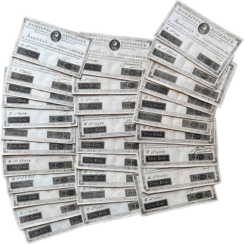 FRANCIA - RIVOLUZIONE. Lotto di 92 Assignat de Trois Cents livres 1791.