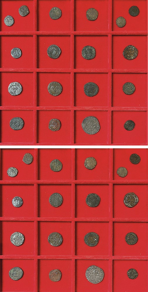 Monetazione mista dal XIII al XVI secolo, fra cui si segnalano: CARLO II D'ANGIÒ, 1285-1309. Denaro regale - ROBERTO I D'ANGIÒ, 1309-1343. Gigliato - FEDERICO III D'ARAGONA, 1496-1501. Sestino. Argento e rame. Conservazioni da B/MB a BB.