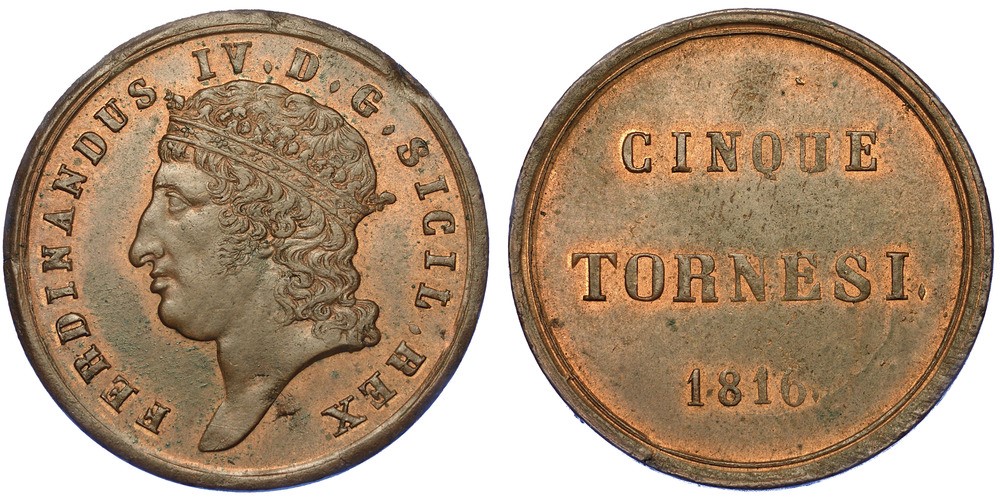 NAPOLI. FERDINANDO I DI BORBONE, 1816-1825. 5 Tornesi 1816.