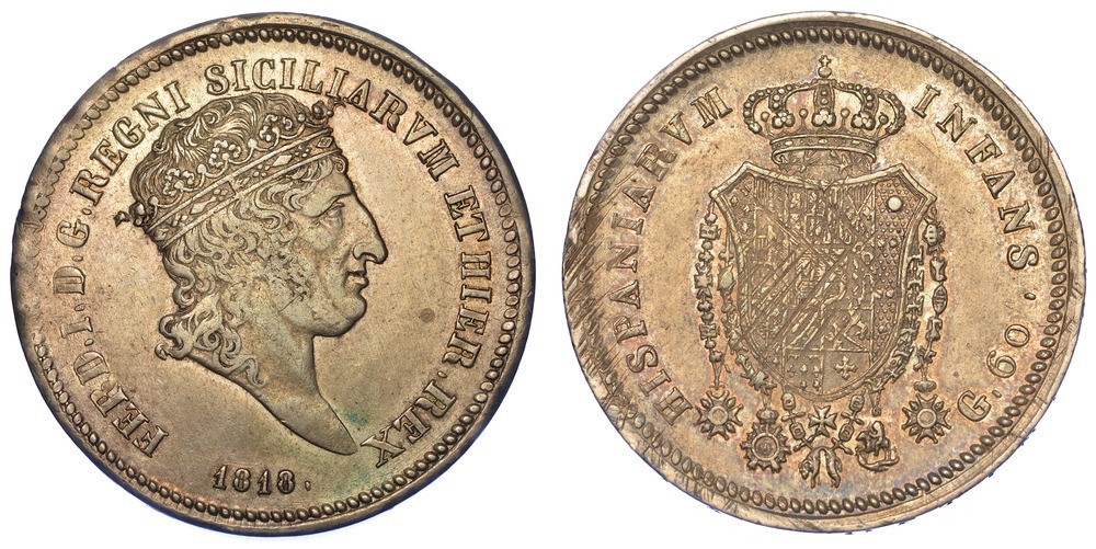 NAPOLI. FERDINANDO I DI BORBONE, 1816-1825. Mezza piastra da 60 Grana 1818.