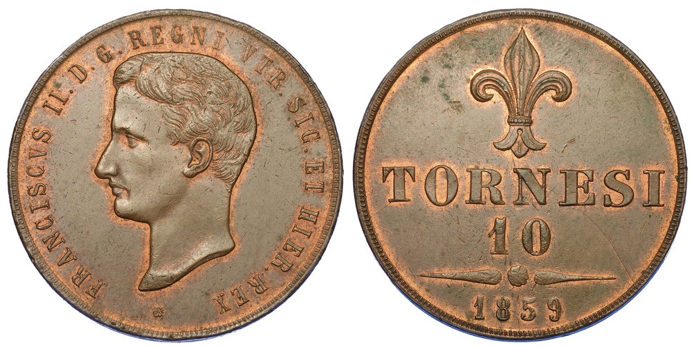 NAPOLI. FRANCESCO II DI BORBONE, 1859-1860. 10 Tornesi 1859.