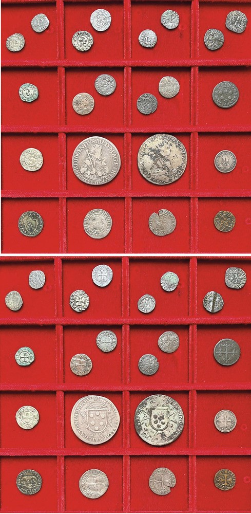 Monetazione mista dal XII al XVII secolo, fra cui si segnalano: PISA-FERDINANDO I DE' MEDICI, 1595-1608. Tallero 1595 (graffi) - PISA-COSIMO II DE' MEDICI, 1608-1620. Tallero 1611 (falso d'epoca) - SIENA-REPUBBLICA, 1180-1390. Grosso da 5 Soldi (molto raro). Argento e rame. Conservazioni da B/MB a q.BB