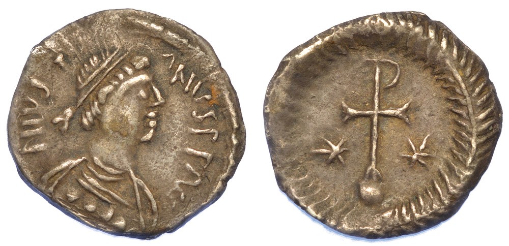 Provenienza indicata nel cartellino dal collezionista: Munzen und Medaillen, Basilea agosto 1962, listino 225 lotto n. 60 (Giustino II).