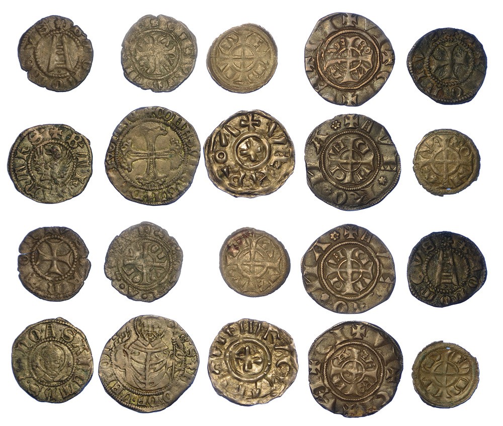 Monetazione mista dal XIII al XIV secolo, fra cui si segnalano: CANGRANDE DELLA SCALA, 1311-1329. Grosso (2 esemplari) - GIAN GALEAZZO VISCONTI, 1387-1402. Soldo. Argento e rame. Conservazioni da MB a MB/BB.