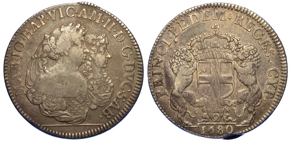 DUCATO DI SAVOIA. VITTORIO AMEDEO II DI SAVOIA. REGGENZA DELLA MADRE MARIA GIOVANNA BATTISTA, 1675-1680. Scudo bianco 1680. [..]