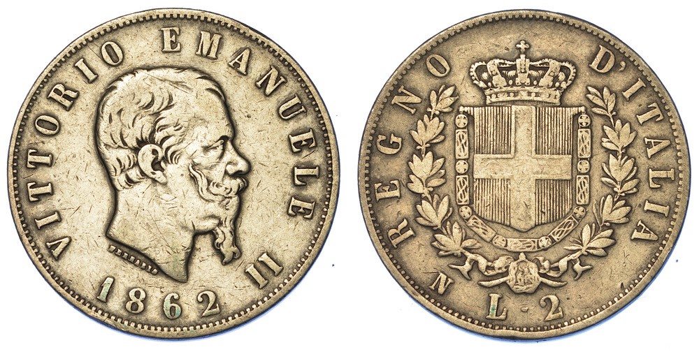 REGNO D'ITALIA. VITTORIO EMANUELE II DI SAVOIA, 1861-1878. 2 Lire 1862. Napoli.