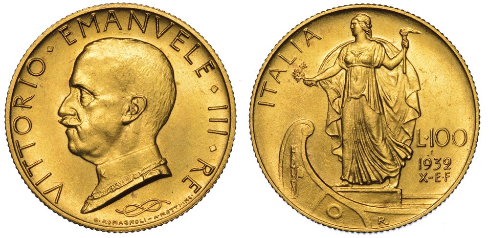 REGNO D'ITALIA. VITTORIO EMANUELE III DI SAVOIA, 1900-1946. 100 Lire 1932/A. X. Italia su prora.