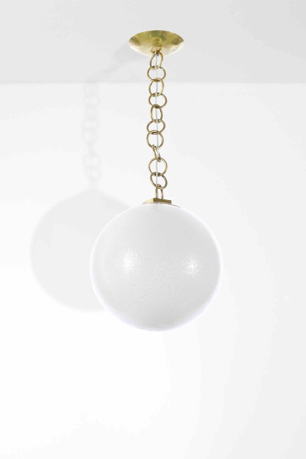 Struttura in ottone e diffusore in vetro di Murano a bollicine.