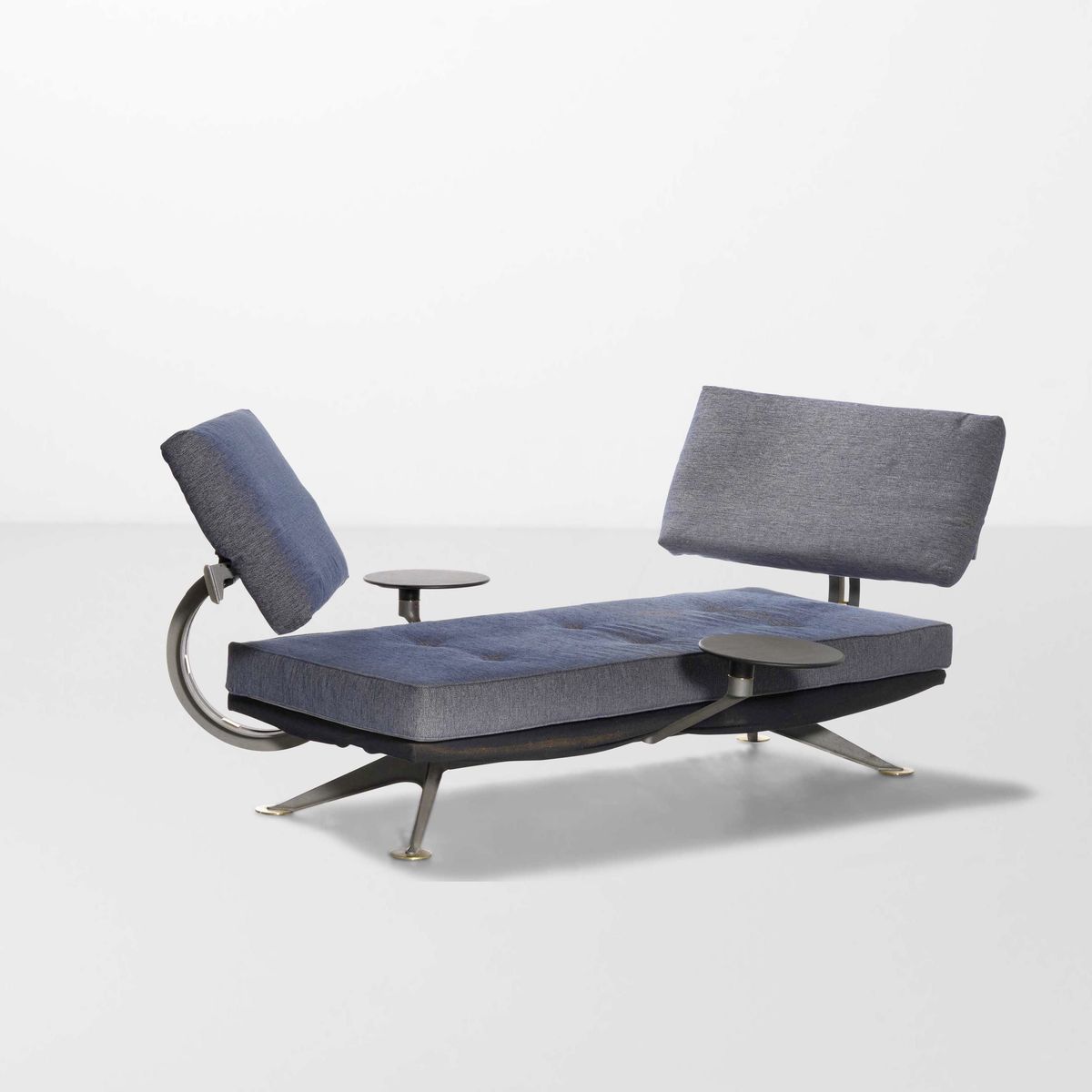 Struttuta in metallo, schienali mobili e rivestimento in tessuto.