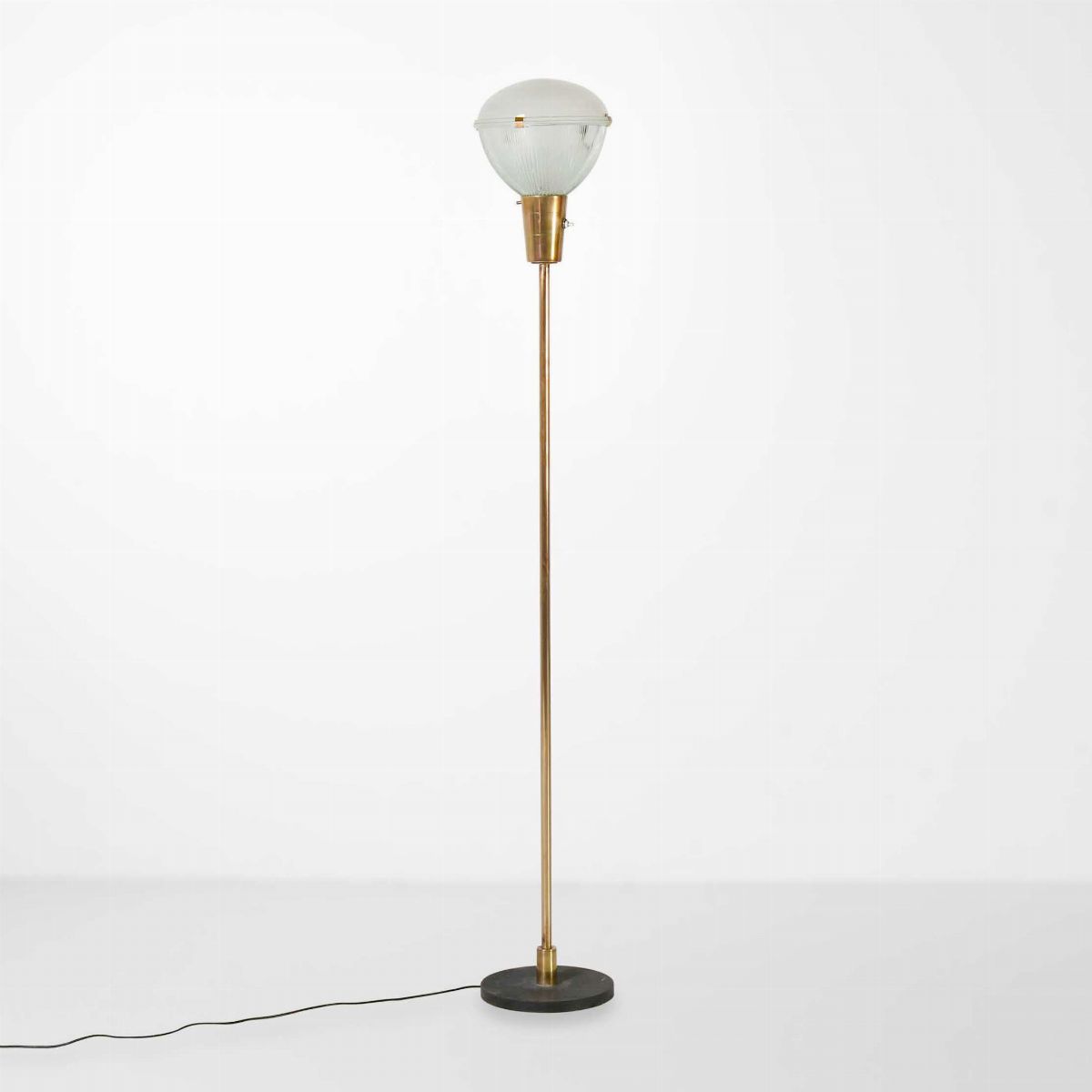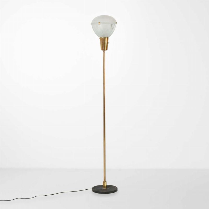 Struttura in ottone e base in metallo laccato. Diffusore in vetro stampato.
