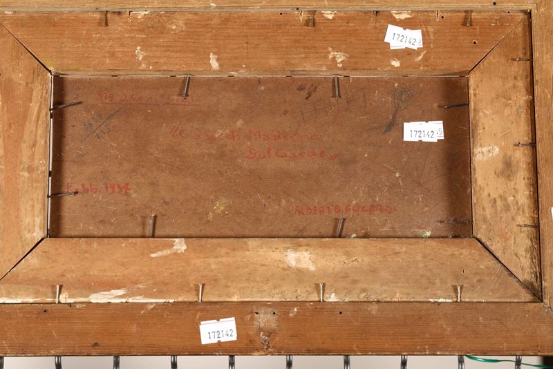 olio su cartoncino, cm 15x31, firmato in basso a destra