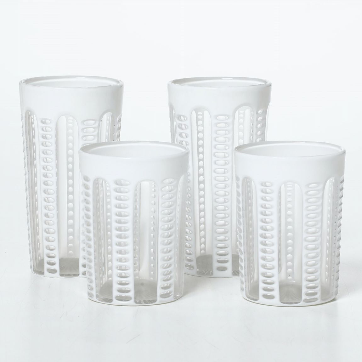 12 bicchieri da acqua (altezza cm 13); 7 bicchieri da vino (altezza cm 10). Conservazione: ottima