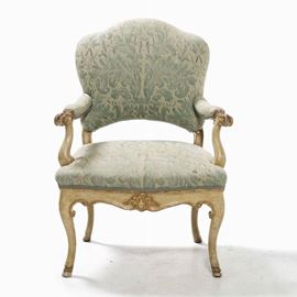 Poltrona in legno intagliato e dipinto. XVIII-XIX secolo