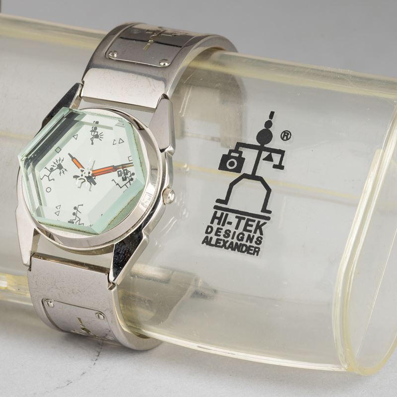 Orologio al quarzo di forma con bracciale rigido e vetro esagonale, 34 mm