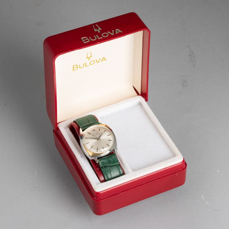 Accutron solo tempo quadrante Argentè in acciaio con placche in oro, movimento elettromeccanico, 33 mm