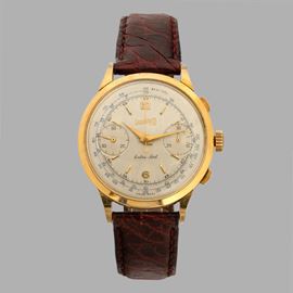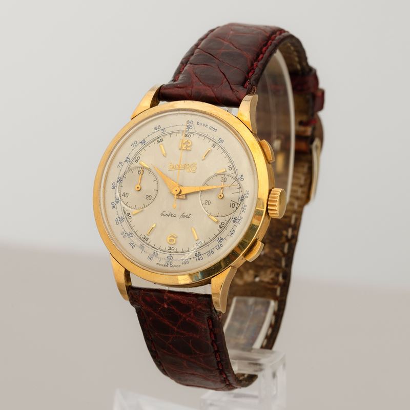 Extrafort in oro giallo 18k carica manuale, quadrante argentè due contatori e tasti quadri, 40 mm