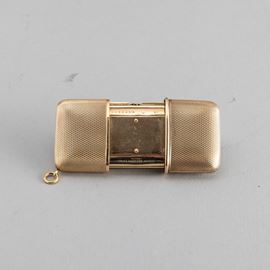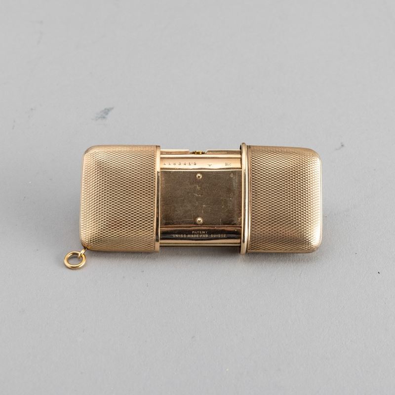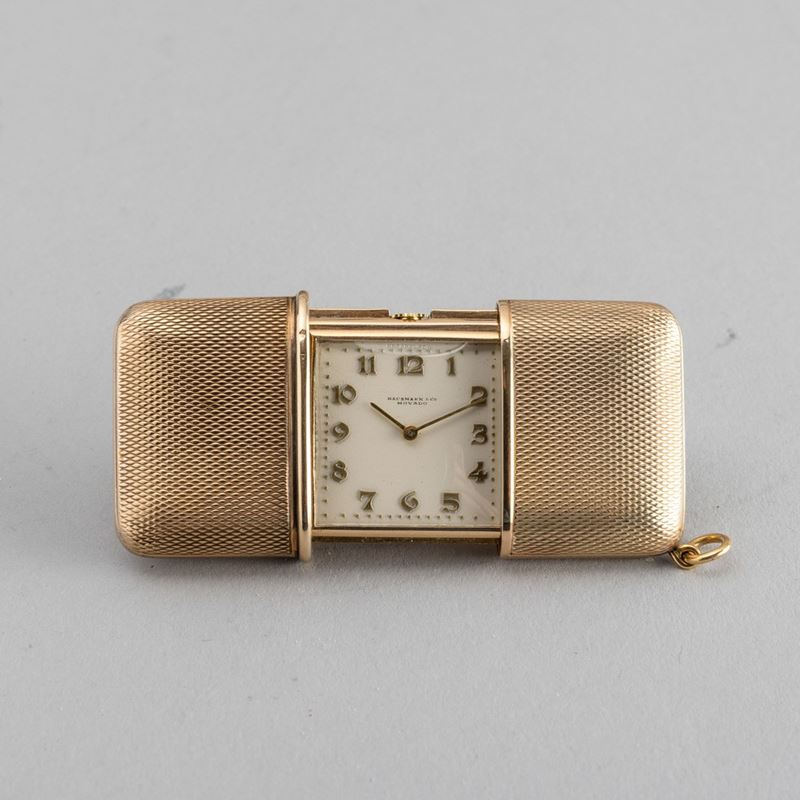 Ermeto Hausmann in oro 9k, carica manuale, quadrante Argentè con numeri applicati e astuccio originale 29x24 mm