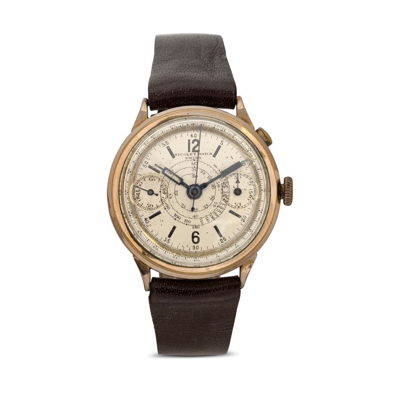 Cronografo monopulsante laminato carica manuale, quadrante Argentè con scala tachimetrica a chiocciola, 39 mm