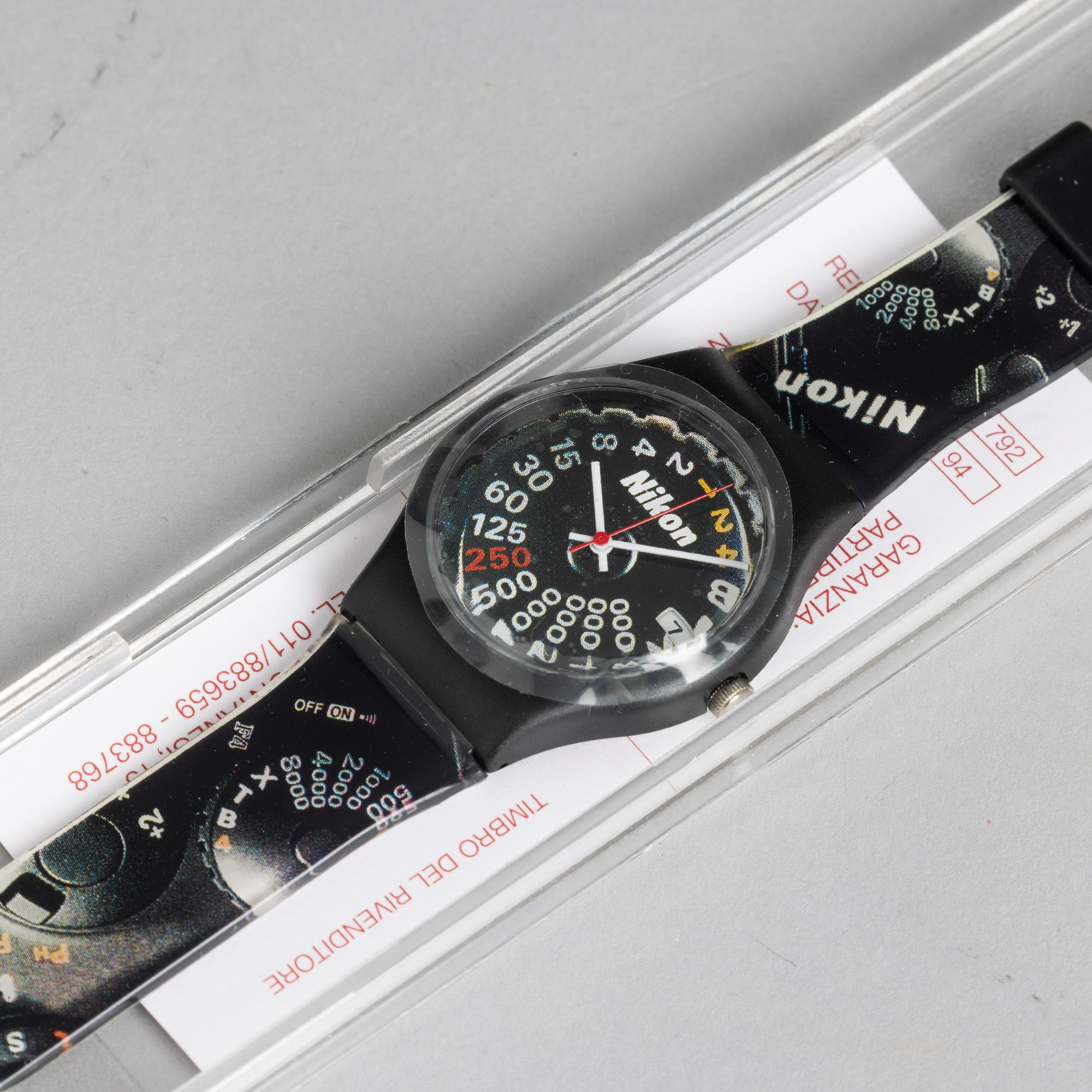 Orologio al quarzo in plastica con datario e quadrante nero, 29 mm