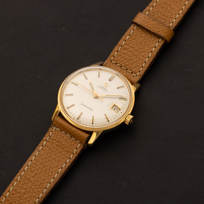 Seamaster in oro giallo 18k con movimento automatico e fondo a vite, indicazione della data, quadrante argentè con indici [..]