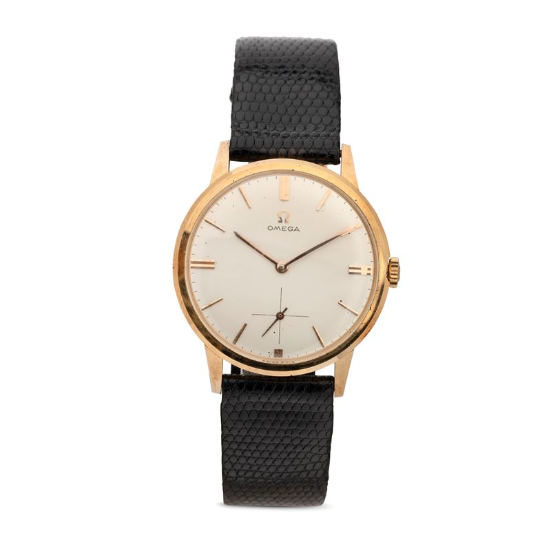 Solo tempo carica manuale in oro giallo 18k, "NOS" quadrante Argentè con indici applicati, 34 mm