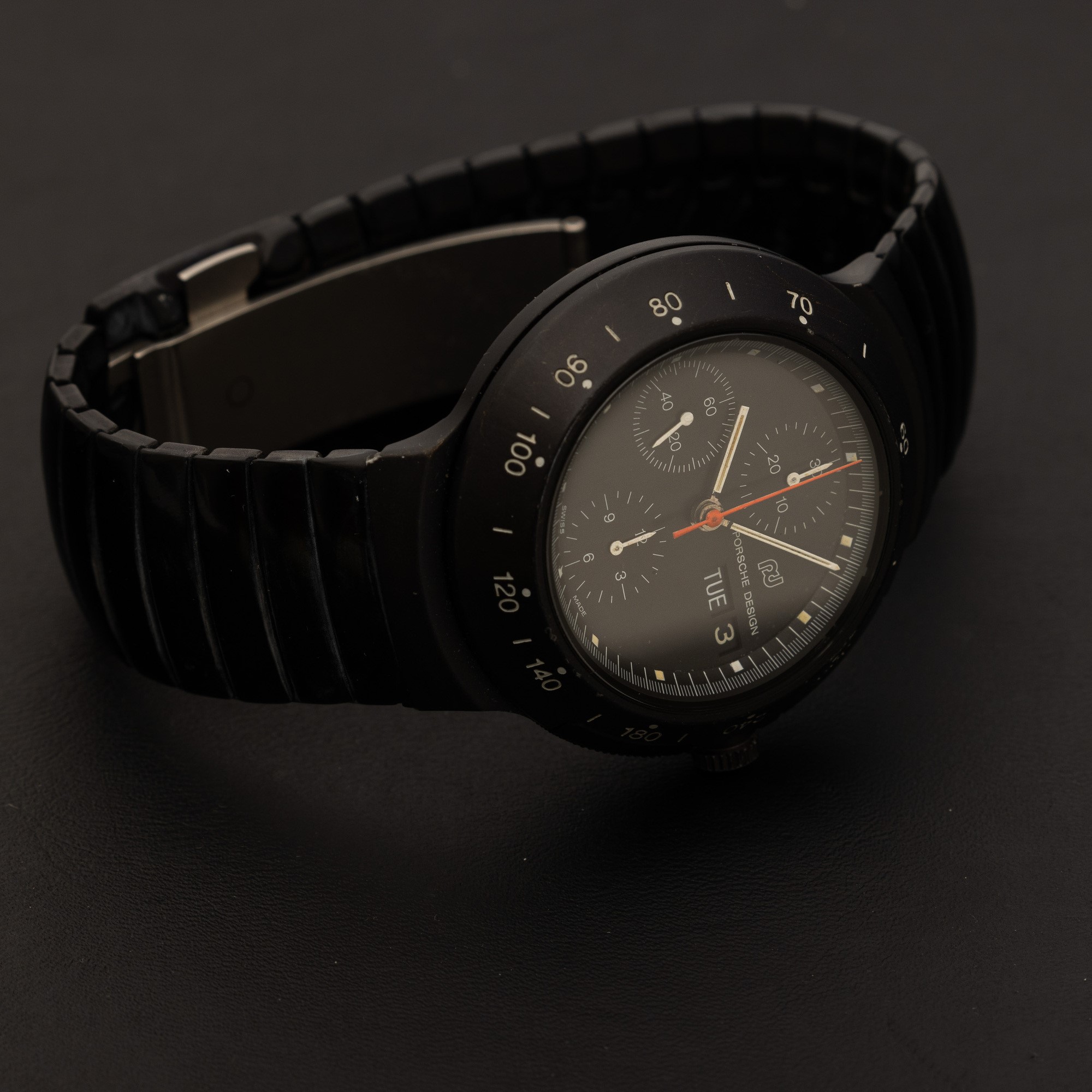 Porsche Design automatico Black Chrono, pulsanti integrati nella cassa, quadrante nero con contatori verticali e indicazione [..]